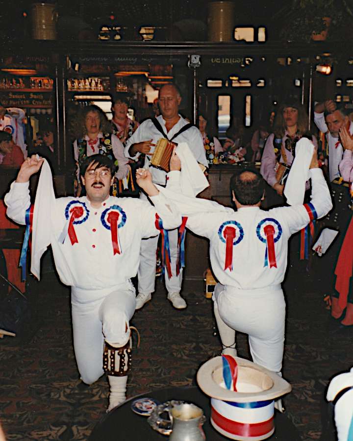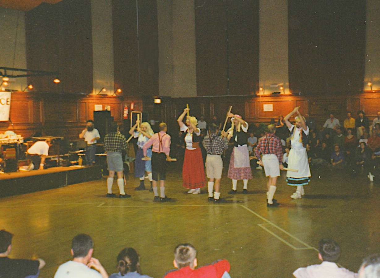 Photo Gallery – 1996 to 1999 Miscellaneous 1996 photos Jump to event Miscellaneous 1996 photosMiscellaneous 1997 photosMiscellaneous 1998 photosMiscellaneous 1999 photos Kirtlington Lamb Ale – ProcessionPost procession – we loved the black, GarethActually, it went the other wayJameson modelling his new ceilidh outfitWarwick Folk FestivalSidmouth – Jameson and Jane at last win the ‘Sidmouth posers of the year’ (also known as the jig competition)Top poserJerry involuntarily performing ‘The Old Woman Tossed Up In A Blanket’ Miscellaneous 1997 photos Jump to event Miscellaneous 1996 photosMiscellaneous 1997 photosMiscellaneous 1998 photosMiscellaneous 1999 photos Downs on Tour Weekend & Jameson’s 30th birthday – Windsor provided a nice pressieLater that same evening – don’t askLong Itchington Day of Dance, May – an injured Paul…Long Itchington Day of Dance, May – but ever the pro…Dorset Tour, June – (back) Gareth, Jane, Colin, Mike, Mal, Pamela, Simon, Lee, Malcolm, Jameson (front) Rob, Jerry, PaulRedbornestoke 21st – Jerry, Lee, JamesonOff to the London Day of Dance – the only time we were dry all dayLondon Day of Dance – lunchtime – Gareth playing for Lee and JerryLondon Day of Dance – ceilidh spot at Cecil Sharp House (not sure Cecil would approve)Jerry and MalMalcolm and Paul Miscellaneous 1998 photos Jump to event Miscellaneous 1996 photosMiscellaneous 1997 photosMiscellaneous 1998 photosMiscellaneous 1999 photos Kirtlington Lamb AleRob – where did you get those hats? Sarum Day of Dance, SalisburyDorset Tour Gareth trying to remember … anythingDorset Tour – the rain stopped so we felt obliged to do something (have another drink, I think)BB 21st birthday weekend – Marlow Jane playing for Jameson and PaulJameson tried but couldn’t get as high as PaulCake, made and hand iced by BB’s fair hand maidens (thanks, Jen and Sue)At the 21st anniversary ceilidh – the old team show the youngsters (!!) how it should be doneAt the 21st anniversary ceilidh – just before the Cockney Reel of Death went wrong againWarwick Folk Festival processionWarwick Folk Festival – Lee won by a knockoutWarwick Folk Festival – BB make something of a splashBray (Ireland) International Festival Miscellaneous 1999 photos Jump to event Miscellaneous 1996 photosMiscellaneous 1997 photosMiscellaneous 1998 photosMiscellaneous 1999 photos Start of season at Rochester – which part of Jane is Jameson tickling?Jane and Gareth, the 1999 all star line upKirtlington Lamb Ale – Dance of the Little FairiesKirtlington – the ever modest Wooders brothersDorset Tour – DorchesterDorset Tour – First Dance at the Red Lion – any time you’re ready, PaulDorset Tour, Sunday line up (Jameson in Wimborne, replaced by Charlotte)Final wooCoconuts at Morris Fed AGM, Nottingham with Radio Nottingham reporter broadcasting live (must have been riveting radio…)Actually she was quite goodJane with Rob and PaulNottingham – Fed AGM show spotThe car is a Morris, that’s why we did it you seeWe were looking for another fiddler, but this bloke, Nigel someone, failed the audition …..Xmas 99 lineup