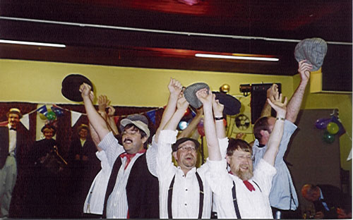 Photo Gallery – 2002For the story behind the photos read the Posts from 2002 Haddenham, Adderbury, Sandhurst & Tim Jump to event Haddenham, Adderbury, Sandhurst & TimRochester SweepsMortimer's weekend25th Anniversary – Our guest teams25th Anniversary – BB and friendsSidmouthMorris Fed WeekendMike and Lyn's WeddingBunfight 4 Feb – Haddenham ceilidh spot (not like this)27 Apr – Adderbury coconutters27 Jun – Wellington Arms, Sandhurst with MayflowerAugust – Tim promoting Lotto unclaimed prizes (but no-one’s claimed him yet) Rochester Sweeps Jump to event Haddenham, Adderbury, Sandhurst & TimRochester SweepsMortimer's weekend25th Anniversary – Our guest teams25th Anniversary – BB and friendsSidmouthMorris Fed WeekendMike and Lyn's WeddingBunfight 4 May – Rochester SweepsSchroederingNice rtb’s, boys …….The end of Coconuts, with the crowd going wild (just out of camera shot)Our musicians with those Hook groupies in close attendanceCotswold meets Border (not sure they got on very well)A welcome addition to the musical ranks Mortimer’s weekend Jump to event Haddenham, Adderbury, Sandhurst & TimRochester SweepsMortimer's weekend25th Anniversary – Our guest teams25th Anniversary – BB and friendsSidmouthMorris Fed WeekendMike and Lyn's WeddingBunfight 6/7 July – Mortimer’s weekend, based at Ambergate, DerbyshireSome of our hostesses2 musicians, 5 legs – how do they do it?Defying gravity at CromfordHeights of AbrahamFine time to be playing aeroplanes, JamesonJane serenading her lover loserAt Matlock BathHurry up, we’ve a train to catchA Night at the Oscars – Mortimer’s GreaseCor Blimey its the Cockney Dance again, under the guise of Mary Poppins“and when they met together, their caps they all did fling …”Gawd bless yer, one and allAndy from Hammersmith in their spoon race spot. Love the tasteful outfit, Andy.Lee wins an Oscar for best VPL of the weekend (I think it stood for Very Poor Lingerie)And BB’s very own Oscar for ‘Most Uplifting Performance’. Aaaaaaahhhhh.Leisurely Sun lunchtime at AlderwasleyHammersmith inspecting Mortimer’s ankles or similar 25th Anniversary – Our guest teams Jump to event Haddenham, Adderbury, Sandhurst & TimRochester SweepsMortimer's weekend25th Anniversary – Our guest teams25th Anniversary – BB and friendsSidmouthMorris Fed WeekendMike and Lyn's WeddingBunfight Betty LuptonsBetty LuptonsBetty Luptons musiciansBullnoseBullnoseBullnose musiciansChiltern HundredsChiltern Hundreds musiciansChiltern Hundreds musiciansInsword – a tumbleInsword – another tumbleInsword – guess what?Insword’s Sally, understated as everJackstraws (well, Georgestraws more accurately)JackstrawsJackstraws musiciansPigstyPigsty musiciansRedbornstokeRedbornstoke (Barry on vocal)Redbornstoke musicians (oh all right then, just Adrian)Redbornstoke enjoying the dayStroud LadiesStroud LadiesWindsor 25th Anniversary – BB and friends Jump to event Haddenham, Adderbury, Sandhurst & TimRochester SweepsMortimer's weekend25th Anniversary – Our guest teams25th Anniversary – BB and friendsSidmouthMorris Fed WeekendMike and Lyn's WeddingBunfight Highland Mary at the Bull at BarkhamDance of the Little Fairies in Wokingham Market PlaceMore fairiesThe big band give it allSports Day – Headmaster TimMy those big boys tried really hardSuits you, sir … (sorry, Barry)Brotherly loveThe big boys show Tim their respect …Tim being a bit of a dripWhile they were all still friendsNot any moreRhian letting Trevor be his usual dominating selfThe BB girls (clean shaven) and the BB big girls blouses (facial hair)A word in your shell like, Simon?Ceilidh tottyJethro and the Bismarcks – Nina, Gareth and Ed (scary or what?)Sand dancers extraordinaireBetty Luptons hockey spot (plenty of eye contact girls!! Most important!!)Tim awarding his quiz prize. Do you think he waxes his legs?The BB dancers assemble – the hat swapping bitYoung Man? Who are you kidding?Man in BlackMan in Identity CrisisGiving it large ……Performance over, time for sleepThanks to Yvonne and Simon for taking all the weekend photos and producing an ace album !Weekend nearly over – last splash! Sidmouth Jump to event Haddenham, Adderbury, Sandhurst & TimRochester SweepsMortimer's weekend25th Anniversary – Our guest teams25th Anniversary – BB and friendsSidmouthMorris Fed WeekendMike and Lyn's WeddingBunfight 4 Aug – Sidmouth seafrontNow, what were they all watching – top notch Morris entertainment or a helicopter? (guess)Ah – the perfect synchronicity ……. and relax ….Simon removing something from his hat brimReprise of the prize winning 2001 double jig Morris Fed Weekend Jump to event Haddenham, Adderbury, Sandhurst & TimRochester SweepsMortimer's weekend25th Anniversary – Our guest teams25th Anniversary – BB and friendsSidmouthMorris Fed WeekendMike and Lyn's WeddingBunfight 21/22 Sep – Morris Fed Weekend, Ripon – outside Ripon CathedralThe rest of the team rushing in to rescue Sue …. Mike and Lyn’s Wedding Jump to event Haddenham, Adderbury, Sandhurst & TimRochester SweepsMortimer's weekend25th Anniversary – Our guest teams25th Anniversary – BB and friendsSidmouthMorris Fed WeekendMike and Lyn's WeddingBunfight 26 Oct – Mike and Lyn’s WeddingMike and best (?) man. Do you know, I think Jameson quite fancied himself …..Right, now lets have the brothers and sisters …..… and the nephews and nieces ……The new line up for BoyzoneAnyone for a dance?Now, have I told you how good I look in me suit?Let them eat cake …BB’s new strikers practice their penaltiesMen in Black in setNot easy in those heels, Lyn?At The Swan at Thatcham – now what could BB be ogling? (see next picture)Tim leading a Shepherds Hey to somewhere not charted in the Black Book2002 beginners course participants, Ken, Linda & Bob, all Cavaliering in public Bunfight Jump to event Haddenham, Adderbury, Sandhurst & TimRochester SweepsMortimer's weekend25th Anniversary 