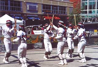 Photo Gallery – 2003For the story behind the photos read the Posts from 2003 John and Sarah’s wedding Jump to event John and Sarah's weddingOyster & Winchester Folk FestivalBB Day of DanceAvebury with Holt MorrisPigsty weekendBB annual Dorset tourSidmouthThe Witchmen WeekendMorris Federation weekendBanbury Canalside FestivalTrafalgar Square 27 Apr – John and Sarah’s wedding …… and some of the assorted guestsA BB line upThe team put the weight restriction on the wooden bridge to a severe testJohn exhibited the fastest reactions seen all day when seconds were announcedThe Sue Graham special cake – spot the Morris references ….… a shame to cut it up, but cake is cakeGetting ready for the The Swans spot at the ceilidh with ChalktownDoes your bum look big in this? – well yes actually….Sheer synchronicity“So how did I do ….?”Tour Manager Paul (50% of all profits lads?) with his cygnet proteges Oyster & Winchester Folk Festival Jump to event John and Sarah's weddingOyster & Winchester Folk FestivalBB Day of DanceAvebury with Holt MorrisPigsty weekendBB annual Dorset tourSidmouthThe Witchmen WeekendMorris Federation weekendBanbury Canalside FestivalTrafalgar Square May 4 – Canterbury – Princess RoyalMay 17 – Winchester Folk Festival – before the rainAfter the rainMusicians plus groupie BB Day of Dance Jump to event John and Sarah's weddingOyster & Winchester Folk FestivalBB Day of DanceAvebury with Holt MorrisPigsty weekendBB annual Dorset tourSidmouthThe Witchmen WeekendMorris Federation weekendBanbury Canalside FestivalTrafalgar Square 7 Jun – BB Day of Dance – in Forbury Gardens3 wise men (using the terms wise and men loosely)With guests The Outside Capering Crew …… and Rogue in the Town Hall SquareSue and Tracy a.k.a. me and my shadowSimon demonstrating where he can stick his broomThe outside capering fewA line alignedYears of experience between them, they watch the young uns having a go …Bob had a reservation for lunchAt the Oracle as part of a publicity day for the Caversham Folk FestivalCrouch and hold ……Highland MaryingIn Wokingham Market place, a never knowingly overrehearsed Princess Royal for 9ishMusicians at play Avebury with Holt Morris Jump to event John and Sarah's weddingOyster & Winchester Folk FestivalBB Day of DanceAvebury with Holt MorrisPigsty weekendBB annual Dorset tourSidmouthThe Witchmen WeekendMorris Federation weekendBanbury Canalside FestivalTrafalgar Square Thurs 19 Jun, at Avebury with Holt MorrisHolt doing their thing …… and againSinging session afterwards – Lee and Malcolm do Pink Floyd ……Psychedelic handwaving in the chorus for those not wimping out at the bar Pigsty weekend Jump to event John and Sarah's weddingOyster & Winchester Folk FestivalBB Day of DanceAvebury with Holt MorrisPigsty weekendBB annual Dorset tourSidmouthThe Witchmen WeekendMorris Federation weekendBanbury Canalside FestivalTrafalgar Square 28 Jun – Pigsty weekend, Bristol” ‘Ere, guess what that pigeon done – all down me kit too”Still, he took it well ….Backing coconuts for Harberton Navy BB annual Dorset tour Jump to event John and Sarah's weddingOyster & Winchester Folk FestivalBB Day of DanceAvebury with Holt MorrisPigsty weekendBB annual Dorset tourSidmouthThe Witchmen WeekendMorris Federation weekendBanbury Canalside FestivalTrafalgar Square Sat 19 Jul, BB annual Dorset tour kicks off again at the Smiths Arms, GodmanstoneDrawing in the crowds on the prom at WeymouthSome of that happy crowdThe end of the Flame dance, with varying degrees of menace ….On the walk down into Cerne Abbas Sidmouth Jump to event John and Sarah's weddingOyster & Winchester Folk FestivalBB Day of DanceAvebury with Holt MorrisPigsty weekendBB annual Dorset tourSidmouthThe Witchmen WeekendMorris Federation weekendBanbury Canalside FestivalTrafalgar Square Sat 2 Aug – The opening ceremony, first actSimon and Tim wow the Councillors (the ones that were awake)Up we go …… and down againMixing with our new friends (Bob was attracted by the hat….)(… the rest of us were just attracted….)Musicians outside the AnchorWavy Princess Royal at the Sat afternoon Arena showAnd the prize goes to the one in the middleSun morning on the seafront, with rampant GoatRegular musicians plus interloper for the Sum morning procession‘What Kind of Fool am I??’….Sunday afternoon Jig competition – going well at the moment …… still going pretty well ….… oops, its all fallen apart at the end…… but they won anyway !!Sun evening – up we go again at the AnchorFollowed by a ceilidh spotMonday evening backstage – Jerry getting ready for the big nightThe Flaming boysMean and moody (or maybe just mean?)The boys in actionHaarrghh…Big finish – somehow doing Mrs. Casey will never feel quite the same nowPost show chillingTues evening Arena show – finish of Mazurka ….…. followed by our last dance of Sidmouth 2003 – FairiesThe final exitThose who stayed on for the week could relax and dress naturallySidmouth 2003 line up The Witchmen Weekend Jump to event John and Sarah's weddingOyster & Winchester Folk FestivalBB Day of DanceAvebury with Holt MorrisPigsty weekendBB annual Dorset tourSidmouthThe Witchmen WeekendMorris Federation weekendBanbury Canalside FestivalTrafalgar Square Sat 13 Sep – The Witchmen Weekend included Dave and Jo’s handfastingSome of the audience for the ceremonySome Ozzie Osbornes and… erm …The Addams family turned up tooThe Addams family turned up too Morris Federation weekend Jump to event John and Sarah's weddingOyster & Winchester Folk FestivalBB Day of DanceAvebury with Holt MorrisPigsty weekendBB annual Dorset tourSidmouthThe Witchmen WeekendMorris Federation weekendBanbury Canalside FestivalTrafalgar Square Sat 27 Sep – Morris Federation weekend, Much Wenlock, StaffsJust not quite enough posing, ladsOn the iron bridge at IronbridgeSole musician for the weekend Banbury Canalside Festival Jump to event Jo