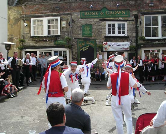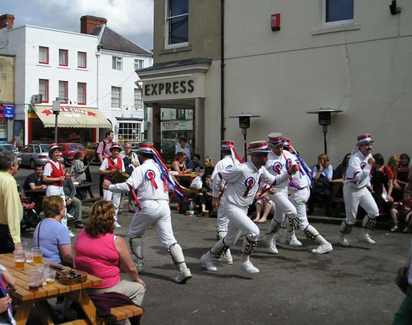 Photo Gallery – 2004For the story behind the photos read the Posts from 2004 IVDF Jump to event IVDFWoodstockRobert's christeningThe Queens OakHolmfirth FestivalChippenham FestivalKirtlington Lamb AleUIB LtdDorset TourWarwick FestivalSidmouth FestivalLurgashall Village Fete (Miller's Gin)Wallingford BunkfestBunfightWokingham Winter CarnivalXmas dinner Sat 27 Feb – IVDF, Exeter – Lee goes all Sumo on us Woodstock Jump to event IVDFWoodstockRobert's christeningThe Queens OakHolmfirth FestivalChippenham FestivalKirtlington Lamb AleUIB LtdDorset TourWarwick FestivalSidmouth FestivalLurgashall Village Fete (Miller's Gin)Wallingford BunkfestBunfightWokingham Winter CarnivalXmas dinner Sat 13 Mar – Walking tour of Woodstock – looks like Jameson’s gone too early againYellow lines on the road can be very helpful……. and s-t-r-e-t-c-h Robert’s christening Jump to event IVDFWoodstockRobert's christeningThe Queens OakHolmfirth FestivalChippenham FestivalKirtlington Lamb AleUIB LtdDorset TourWarwick FestivalSidmouth FestivalLurgashall Village Fete (Miller's Gin)Wallingford BunkfestBunfightWokingham Winter CarnivalXmas dinner Sun 25 Apr – Robert’s christening – Rob, where’s your socks ?? The Queens Oak Jump to event IVDFWoodstockRobert's christeningThe Queens OakHolmfirth FestivalChippenham FestivalKirtlington Lamb AleUIB LtdDorset TourWarwick FestivalSidmouth FestivalLurgashall Village Fete (Miller's Gin)Wallingford BunkfestBunfightWokingham Winter CarnivalXmas dinner Thur 29 Apr, The Queens Oak – the cloak is uncovered and the season officially starts..but there’s a boy forgotten his kit, should have made him do vest and pantsDance of the Big Goblins … with some nifty footworkThe season’s only just begun but the posing skills are still thereJig time Holmfirth Festival Jump to event IVDFWoodstockRobert's christeningThe Queens OakHolmfirth FestivalChippenham FestivalKirtlington Lamb AleUIB LtdDorset TourWarwick FestivalSidmouth FestivalLurgashall Village Fete (Miller's Gin)Wallingford BunkfestBunfightWokingham Winter CarnivalXmas dinner 8-9 May, Holmfirth FestivalElegance, poise, perfect balance, – well, maybe next timeRain, what rain?Rain, what rain?I do declare its Lucky PierreBob’s replacement is lined upJust before it never rained on Berkshire Bedlam in the processionThe Fabulous Fezheads being as fabulous as everAnd the crowd are paying rapt attention to Stone Monkey’s fabulous dancers Chippenham Festival Jump to event IVDFWoodstockRobert's christeningThe Queens OakHolmfirth FestivalChippenham FestivalKirtlington Lamb AleUIB LtdDorset TourWarwick FestivalSidmouth FestivalLurgashall Village Fete (Miller's Gin)Wallingford BunkfestBunfightWokingham Winter CarnivalXmas dinner 29 May – Chippenham Festival – Paul wears those trousers at our outdoors workshopWho’s a pretty boy then?Tim enjoying playing with his nutsSue seems happy, must be about to do a 250 mile trek before teaPaul resting his knees before the procession started …… in which Stuart (kidnapped from Chinewerde) led us …….. and in which we did the traditional Fieldtown ‘posers’ figures (stopping whenever a camera appeared) …… until we finished by exiting stage centre (best bit of a procession – when it’s just passed by)At the Rose and CrownBig finish for Mazurka Kirtlington Lamb Ale Jump to event IVDFWoodstockRobert's christeningThe Queens OakHolmfirth FestivalChippenham FestivalKirtlington Lamb AleUIB LtdDorset TourWarwick FestivalSidmouth FestivalLurgashall Village Fete (Miller's Gin)Wallingford BunkfestBunfightWokingham Winter CarnivalXmas dinner 6 Jun – Kirtlington Lamb Ale – some of our finest BB tarts were on show6 Jun – Kirtlington Lamb Ale – some of our finest BB tarts were on show6 Jun – Kirtlington Lamb Ale – some of our finest BB tarts were on showTime for a Big Goblin (dance)Bish bash boshRobert and RobertFinal show spot at the school .... which Nigel on the PA (in white cap) talked over continuously but of course we were still gorgeous UIB Ltd Jump to event IVDFWoodstockRobert's christeningThe Queens OakHolmfirth FestivalChippenham FestivalKirtlington Lamb AleUIB LtdDorset TourWarwick FestivalSidmouth FestivalLurgashall Village Fete (Miller's Gin)Wallingford BunkfestBunfightWokingham Winter CarnivalXmas dinner 8 Jun – corporate event for UIB Ltd at Royal Berkshire Hotel, Ascot …..…. in front of a bemused but appreciative international audience ….….. who didn’t have much idea what was going on ….…. like many of the team in fact …..….. although being real troopers ….…… we gallantly gallied for Britain ….….. and sticked it out to the end …..….well, everyone except John who had gone to scoff the sandwiches Dorset Tour Jump to event IVDFWoodstockRobert's christeningThe Queens OakHolmfirth FestivalChippenham FestivalKirtlington Lamb AleUIB LtdDorset TourWarwick FestivalSidmouth FestivalLurgashall Village Fete (Miller's Gin)Wallingford BunkfestBunfightWokingham Winter CarnivalXmas dinner 26 Jun – Dorset Tour – The Smiths Arms, Godmanstone – raining outside so ……..…..the tallest team in England danced inside the smallest pub in England…..…..and then in the lowest roofed skittle alley in England at the Shave Cross Inn ..… where Jane and Sue played on while …Angela nearly throttled Paul (bit harder next time please)Frozen pudding for Paul at the New Inn, Cerne AbbasSunday 27, fabulous spot at Highcliffe Castle, Christchurch …….…. where Lee wanted a piccy of his new, gleaming, untarnished swordsNo, we don’t know why either Warwick Festival Jump to event IVDFWoodstockRobert's christeningThe Queens OakHolmfirth FestivalChippenham FestivalKirtlington Lamb AleUIB LtdDorset TourWarwick FestivalSidmouth FestivalLurgashall Village Fete (Miller's Gin)Wallingford BunkfestBunfightWokingham Winter CarnivalXmas dinner 24 July – Warwick Festival – Mazurka …… with big finishLining up for something stickySund
