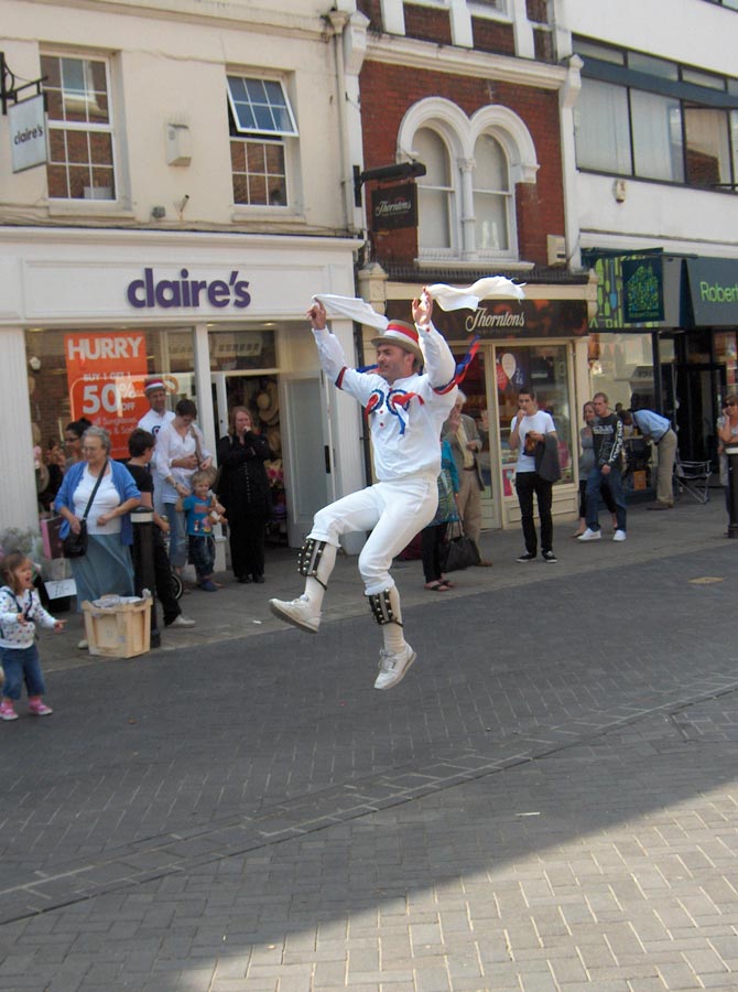 Photo Gallery – 2011For the story behind the photos read the Posts from 2011 IVFDF Bristol Jump to event IVFDF BristolJMO Sheffield DoDJameson and Emma's WeddingNot-The-Dorset TourBricquebec (Normandy)SidmouthTowersey Folk FestivalWallingford BunkfestMorris Fed AGMThe Practice SeasonThe BB Bunfight & Wokingham Winter CarnivalSt. Thomas's DayBB Xmas Meal 26 Feb – the IVFDF Festival in Bristol – OCC join us for a quick Knees Up…..….with the customary stylish finishPoor Paul got a little cold at one pointAn energetic Princess RoyalAnd later that evening, the Armaleggan Ale ……. with an intruder in our hatstackLining up for Goblins ……. and Tim enjoying himself JMO Sheffield DoD Jump to event IVFDF BristolJMO Sheffield DoDJameson and Emma's WeddingNot-The-Dorset TourBricquebec (Normandy)SidmouthTowersey Folk FestivalWallingford BunkfestMorris Fed AGMThe Practice SeasonThe BB Bunfight & Wokingham Winter CarnivalSt. Thomas's DayBB Xmas Meal 14th May – off to Sheffield in our luxury coach for the JMO day of dance – and one of 3 stag weekends for JamesonMass levitation outside Sheffield CathedralMore hoveringIn the Peace Gardens, about to do Knees Up with some confused Pig Dyke membersIt was tricky to keep some of the side out of the fountains, especially those who’d had a shandy at lunchtimeFor some reason though, Jameson needed a little persuasion to go in ….…. but eventually he did ….….. as a result of which several of the side were a little dampLate in the afternoon at the Brown Bear pub, Jameson showing the effects of a heavy day’s dancingA nice respectable evening meal at Piccolino’s Italian restaurant ….…. with Jameson respectably dressed at the start of the evening ….….. before various items were added during the meal …..….. including a wide variety of headgear …..…. and of course the tutu and fairy wingsLater, Bob had trouble keeping out of the Lee / Jameson crossfire ….….. though as Jameson later sobered up ….….. others started to struggle a bit.On the way back to the hotel in full regaliaNext morning, an enthusiatic Paul starts 2 by 2 outside Bakewell Tourist Information …..…. before everyone moved onto Matlock for a set in a quiet Hall Leys Park ……. though we managed to assemble a small audience …..…. before Jameson was led up the Magic Arch in the final danceLater in the afternoon several of us did the Masson Hill walk ……..….. with some of the side taking the shortcut through the wallRob shows his horse whispering skillsAt the end of the weekend, there was some lively banter on the minibus home Jameson and Emma’s Wedding Jump to event IVFDF BristolJMO Sheffield DoDJameson and Emma's WeddingNot-The-Dorset TourBricquebec (Normandy)SidmouthTowersey Folk FestivalWallingford BunkfestMorris Fed AGMThe Practice SeasonThe BB Bunfight & Wokingham Winter CarnivalSt. Thomas's DayBB Xmas Meal 4th June, not much on TV, might as well go to this …..… but first some dancing in Windsor ….…. followed by Jameson’s last dance as a single man (+ brother Simon)One of Jameson’s last capers as a single man etc etc …..At Finchampstead church with best man Malcolm“Where do I sign, Em? Ah yes, under your thumb, good practice for the future”“What’s all this? We’d have preferred confetti, actually …..”After the ceremony with brother SimonAs BB line up ….….. look! There goes Jameson’s bachelorhood ….“Careful where you’re waving those – don’t want any disasters ahead of my wedding night”Hammersmith helpfully assist the marriage in getting off the groundYou’ve got to admit (he certainly did) …… he looked good in his suit“Taxi’s here now, see you later, thanks for coming….”At the evening ceilidh with Stocai, the Men in Black reappear ….…. and this time include a little Charleston ….…. before J+E get tied up in the proceedings….…. after which they can’t bring themselves to get up“Come on Emma, we’ve got to cut this into 250 pieces…..”Next morning, Wheel of Fortune in a deserted Wokingham (apart from the Morris teams…)Emma + Capering CrewAn interloper in the Crew’s Knees Up2 sets of Wizo in front of the Sky Sports HD banner though don’t believe they were filming us Not-The-Dorset Tour Jump to event IVFDF BristolJMO Sheffield DoDJameson and Emma's WeddingNot-The-Dorset TourBricquebec (Normandy)SidmouthTowersey Folk FestivalWallingford BunkfestMorris Fed AGMThe Practice SeasonThe BB Bunfight & Wokingham Winter CarnivalSt. Thomas's DayBB Xmas Meal 25 June, the not-the-Dorset tour kicks off by the Kennet & Avon canal in Devizes, Wiltshire ….…. perhaps the crowd was waiting for us in Dorset?By the Market Cross in DevizesIn The BrittoxIn the back garden of The Pelican, bizarrely celebrating its 57th birthday ….….. while later at the campsite Sue belatedly celebrated hers with some help from BobLater that evening at the Cross Keys, Rowde – who’d have thought Mrs Casey could be such fun?Before leaving the campsite the next day, this tree had mysteriously borne fruit – very ripe, tooOn the Sunday outside The Carpenters Arms, Lacock …..…. for 3 by 3, the popular successor to 2 by 2All upA lunchtime picnic ….…. with slightly relaxed dress standards (lovely calves / knees) ….… and a quick game of morris stick cricket ….… before the last dance – the end now in sight ….… just time for Jerry to cheerfully assault Mark before we all went home Bricquebec (Normandy) Jump to event IVFDF BristolJMO Sheffield DoDJameson and Emma's WeddingNot-The-Dorset TourBricquebec (Normandy)SidmouthTowersey Folk FestivalWallingford BunkfestMorris Fed AGMThe Practice SeasonThe BB Bunfight & Wokingham Winter CarnivalSt. Thomas's DayBB Xmas Meal 22nd – 25th July – une visite à Bricquebec en Normandie avec Windsor Morris, chez Cherry et PierreTout le monde – magnifique, non?Mesdames et messieurs, douze mains et douze cuisses pour la Mazurka!Trois par